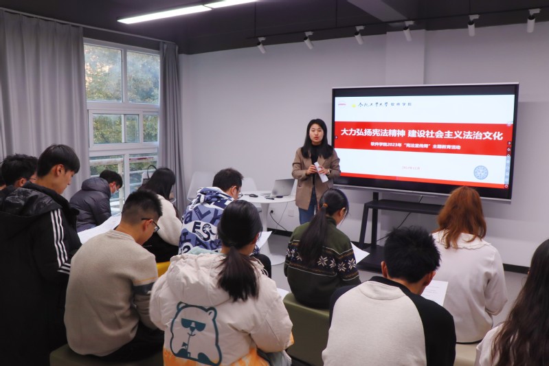 12月3日下午,yl6809永利官网在翡翠湖校区3号学生社区沙龙中心开展“大力弘扬宪法精神,建设社会主义法治文化”主题教育活动。yl6809永利官网2022级辅导员洪晓梅主讲,yl6809永利官网第70期党校班全体学员参与了此次活动。