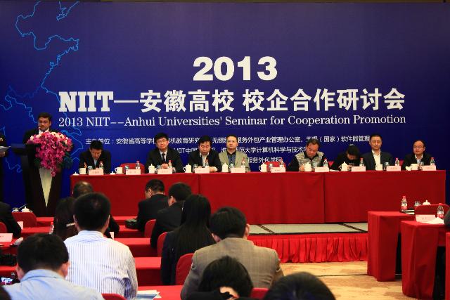 由安徽省高等学校计算机教育研究会、无锡新区服务外包产业管理办公室、无锡(国家)软件园管理中心主办,NIIT(中国)服务外包学院承办的“2013NIIT-安徽高校校企合作研讨会” 4月27至4月28日在无锡召开。安徽省30多所高校60多位领导和老师参加了此次研讨会。我院鲁昌华院长作为特邀嘉宾出席了此次会议,并在会上作了主旨报告,同与会嘉宾一起探讨和交流了IT人才培养的方法和经验。