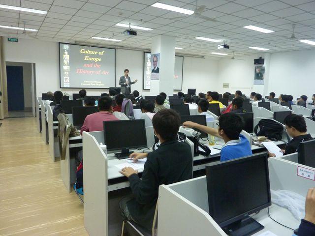 2010年10月15日晚,应yl6809永利官网邀请巴黎第九大学莫诺教授在yl6809永利官网第二多媒体教室为yl6809永利官网学生做“欧洲文化史”巡回讲座。演讲会由yl6809永利官网党委副书记、副院长张炳武主持。